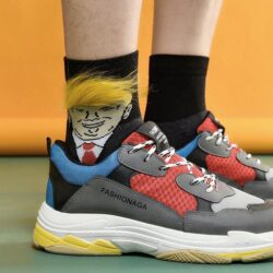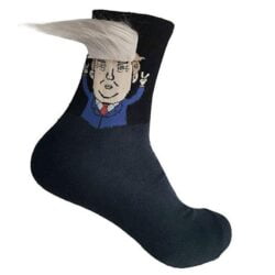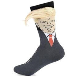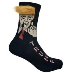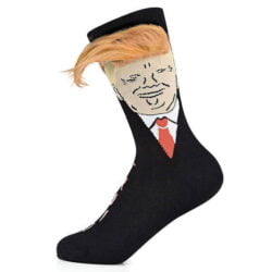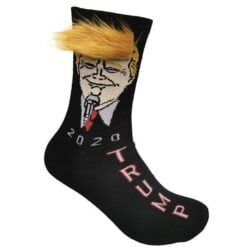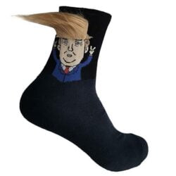 Have some fun with these funny Donald Trump Hair Socks featuring US president and style his trademark blond hair on your socks while you are at it. Available in various designs with and without hair, wear these America socks with POTUS to show your patriotism, as a fashion statement, a political statement or just for fun!