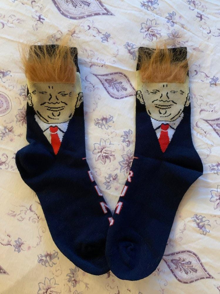 - America’s Donald Trump Hair Socks with a head of glorious hair that you can style, comb over, clip and tease.