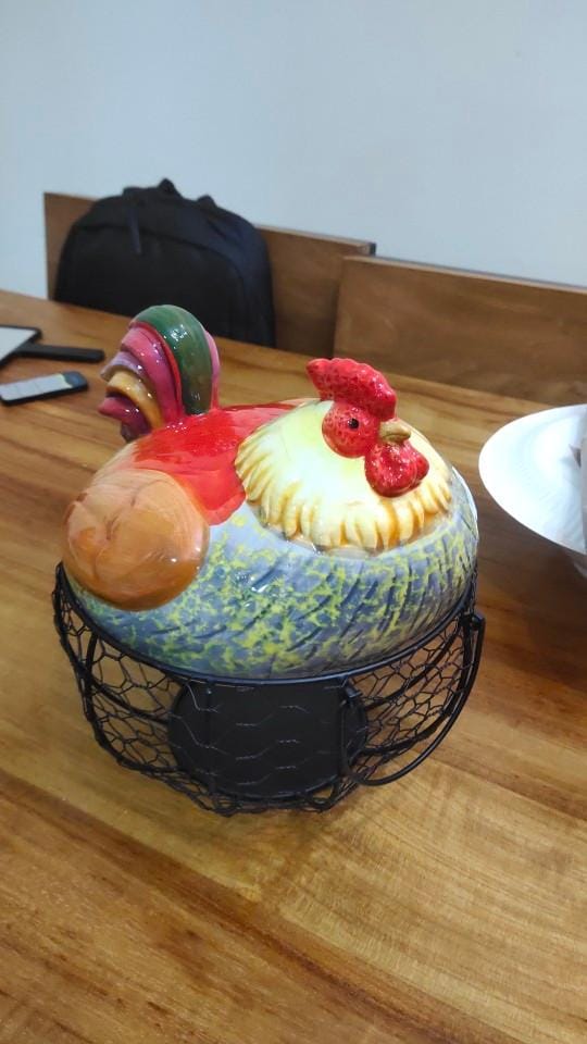 - Bright up your kitchen with Handmade Animal Kitchen Basket made of hand painted ceramic top in splendid colors and sturdy wire basket!