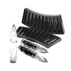 • Makes ten 2.6″ (6.5cm) long AK47 bullet ice cartridges and 6 handgun shaped ice cubes.