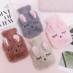 • Adorable Plush Bunny Hot Water Bottle Bag with fluffy removable rabbit shaped cover that keeps your water warm and is so soft to hold!
