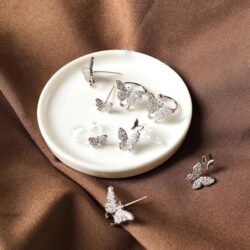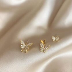 These dainty Butterfly Diamante Earrings are crafted with rhinestones and made for both pierced ears and non-pieced ears. Put on a couple of them and they’ll look absolutely stunning on your ears like a kaleidoscope of butterflies fluttering around your head! Gold and silver butterfly earrings complement any outfit, particularly dresses with floral prints on them!