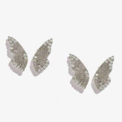 Perfect for a small child’s ears or jewelry wearer who prefers a subtle and elegant look. These dainty Butterfly Wing Stud Earrings are crafted with rhinestones, look beautiful on your ears and will complement any outfit, particularly dresses with floral prints on them!