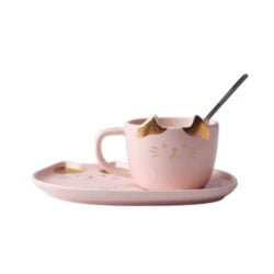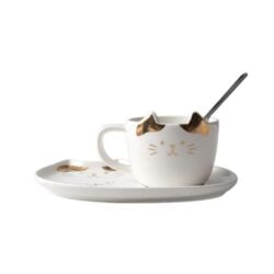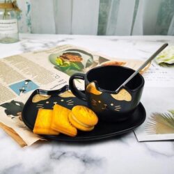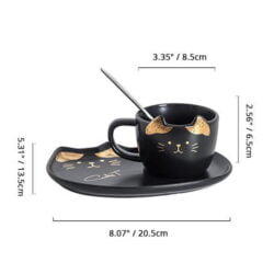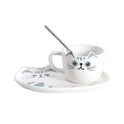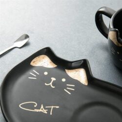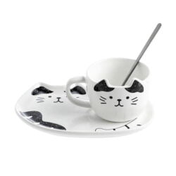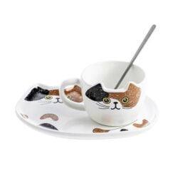 - Adorable cat mug with perky ears, spoon and matching cat shaped serving tray.