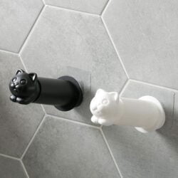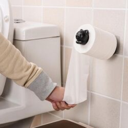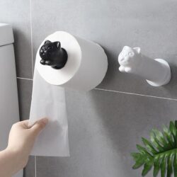 - Adorable Cat Toilet Roll Holder Hanger is cleverly designed to be wall mounted with self-adhesive without any need for drilling!