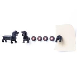 - Magnets double up as a decorative piece in the form of a Dachshund dog.