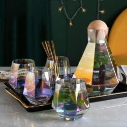 Bring out the finer taste in life and impress your guests with your impeccable taste in glassware with the Hexagonal Diamond Shaped Iridescent Jug and Drinking Glasses Set! Designed to complement the best of your spirits, this stunning heavyweight glass sits well in your hand and will instantly bring glamor to even the plainest drinking water.
