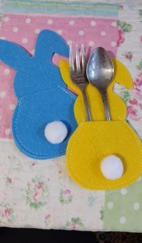 These Easter Bunny Cutlery Holders add a charming touch to my table setting. Love them!