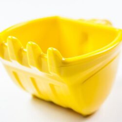 - Designed as a small replica of an excavator bucket with feet to rest securely on table.