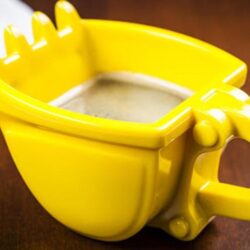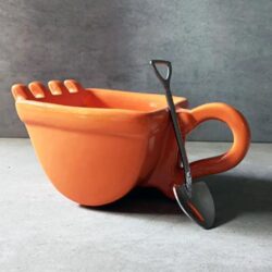 Dig into your hot soup or beverage with the Excavator Bucket Mug! With a Shovel Shaped Spoon for stirring your tea or coffee, the Excavator Digger Cup looks just like a mini excavator bucket and will be sure to impress even your manliest co-workers!