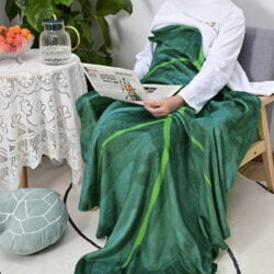 Super soft Realistic Giant Leaf Flannel Blanket is not only perfect for cuddling in, it doubles as a snuggly cape too! Featuring Philodendron Gloriosum plants which are characterized by contrasting veins against velvet green heart shaped leaves, the plush leaf blanket hugs you back after a long hard day at work! Wrap yourself up in this cuddly leaf blanket with double sided flannel and cocoon comfortably no matter which side you use. Snuggle into the giant leaf wrap, lay it on the floor as a kid’s play mat, or hang it as a wall tapestry to create your own oasis.