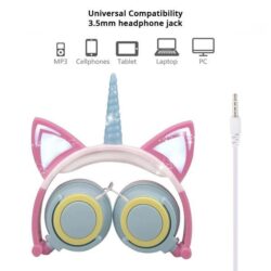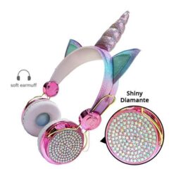 - Glittery Unicorn Headphones are available in LED Light with adorable lighted unicorn horn and glowing ears, or Diamante Studded version with no light but plenty of crystal bling.