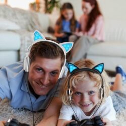 Cat lovers are sure to love these fun and unique Glowing Cat Ear Headphones! Game or work in style while immersed in an amazing audio experience! The glowing blue lights can be turned on or off or set of blinking mode with the button behind the left ear.
