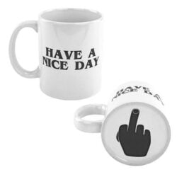 - Have A Nice Day Mug hides your real thoughts underneath the mug with a surprise middle finger when you tip your mug to drink!