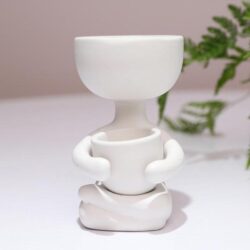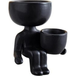 - Figurine Ceramic Planter Flower Pot features an adorable humanoid figure in various sitting poses and holding a pot in its hands.