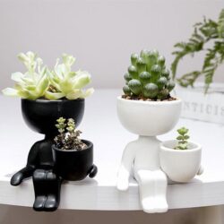 These adorable human shaped planters sitting with their legs hanging down across the ledge or cross legged on the ground while holding a tiny pot in their hands are sure to brighten up your day! Get a bunch of these figurine plant pots for holding your succulents or herbs and configure them in various positions to brighten up your windowsill, tables, mantel, bathroom and more!