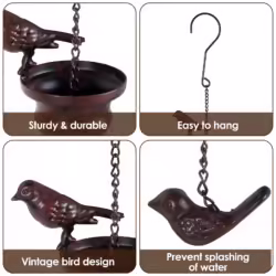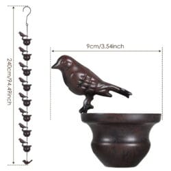 - Crafted with intricate bird perching delicately on a cup that add a charming touch to your home’s exterior. This bird shaped rain chain not only guides water but also acts as a unique garden ornament.