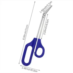 Our Long Handle Toenail Scissors, made from durable, rust-resistant stainless steel, feature an ergonomic design with an 8-inch long loop handle. This allows you to use the full strength of your hand, making them perfect for those who have difficulty bending down to trim their toenails. The tight grip handle and 45-degree angled blade provide a comfortable and precise trimming experience, ideal for seniors, women, men, and anyone struggling with arthritis, joint pain, or reaching their toes. One blade is slightly serrated to prevent slipping.
