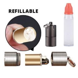 - This tiny Mini Keychain Lighter is refillable and comes in handy for providing fire in urgent situations!
