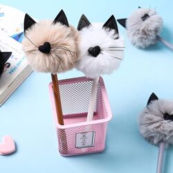 - Adorable Pom Pom Cat Pen with a fluffy kitty plush ball, heart-shaped nose and pointy kitty ears!