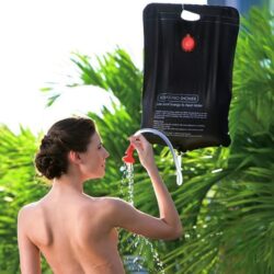 • Portable Outdoor Solar Shower Kit holds 5 gallons / 20 litres for multiple showers and equipped with solar energy heating.