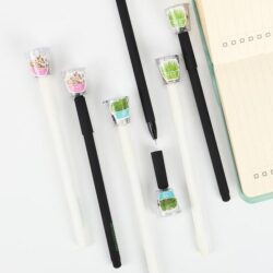 - Mini Potted Plant Pens come with real seeds that will grow in days from the removable planter atop the pen cap!