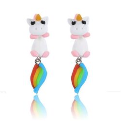 - Rainbow Tail Unicorn Earrings with rainbow colored tail and golden horn!