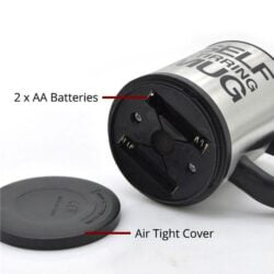 Eliminate sediment from the bottom of your hot chocolate or thick soup! These funky novelty mugs have a self-stirring mechanism in the base which will whip your drink like a whirlwind at the push of a button on the handle.
