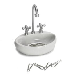 Store your paper clips in style and keep them within easy reach with the Sink Paper Clip Holder. Paper clips dangle all day long from the magnetic faucet – just waiting for you to attach them to your worthy paperwork. This adorable dispenser doubles as a conversation piece for nosier coworkers too!