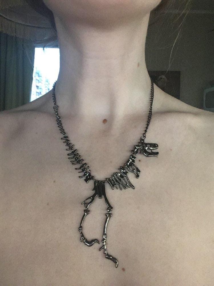 - Make your outfit pop with Skeleton Tyrannosaurus Pendant Necklace featuring moveable joints!