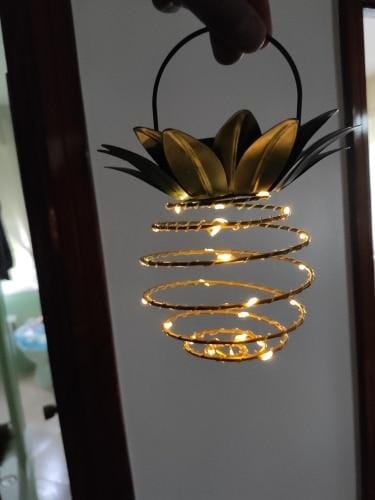 - Solar Pineapple Outdoor Lamp with built-in solar panel automatically turns on when night falls to provide up to 8 hours of continuous lighting.