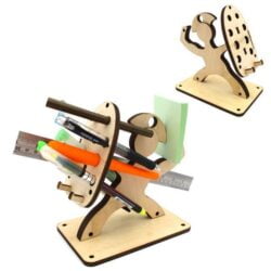 - Holds up to 8 pens, one ruler, one notepad with double arms to use as phone stand.