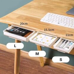 Mount these sleek looking under table drawers easily underneath your desk, table, shelves, cabinets and more to create extra storage space for your stationery, tools or accessories! Get the hand Self-Stick Under Desk Drawer Organizer in different colors to organize your pens, makeup brushes, keys, mobile phones, twisty ties, scissors and more in an easy to reach location while keeping the items out of the way.