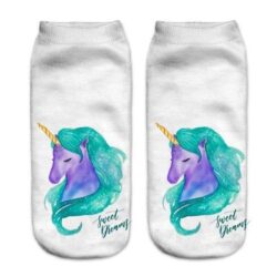 - No show ankle crew socks featuring our favorite mystical creature in various poses and colors!