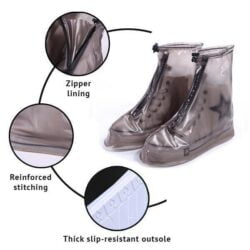 Protect your shoes from mud, rain, snow or dirt and keep them dry while you go on your daily activities in rainy weather! Added elastic band, zipper lining, reinforced stitching and thick outsole for a better fit and maximum durability!