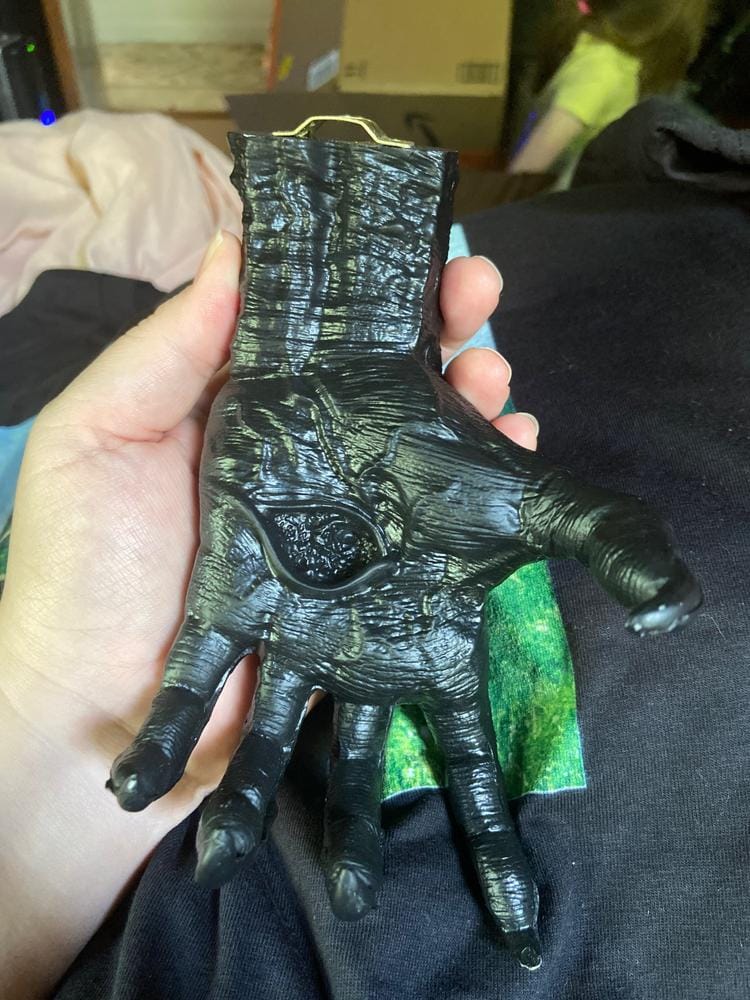- Realistic Witch Demon Hand Hanger with an empty eye socket on its palm strikes terror in the hearts of those who dare steal your jewelry!